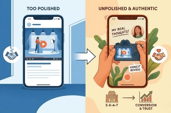 Bagi kamu sebagai Clipper, gaya unpolished adalah kunci untuk membangun parameter Experience, Expertise, Authoritativeness, dan Trust. Dengan memberikan sentuhan yang terasa lebih manusiawi, audiens akan merasa bahwa kamu memang telah melakukan kurasi atau memberikan opini terhadap produk tersebut. Konten yang terasa nyata memiliki peluang konversi yang jauh lebih tinggi karena mengurangi resistensi audiens terhadap iklan yang agresif. Estetika ini memungkinkan kamu untuk tetap menggunakan bank konten namun dengan kemasan yang jauh lebih segar dan terpercaya.