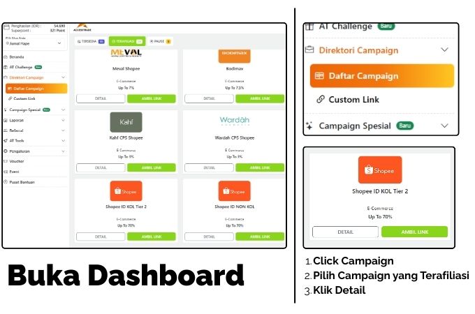 Keberhasilan sistem ekosistem konten bermula dari pemilihan bahan baku yang tepat. Kamu harus masuk ke dashboard publisher dan meninjau campaign yang tersedia. Pilihlah campaign yang memiliki materi pemasaran yang lengkap dan visual yang menarik. Materi yang berkualitas akan memudahkan kamu dalam melakukan langkah distribusi selanjutnya dan memastikan audiens mendapatkan impresi yang positif sejak awal melihat konten kamu.