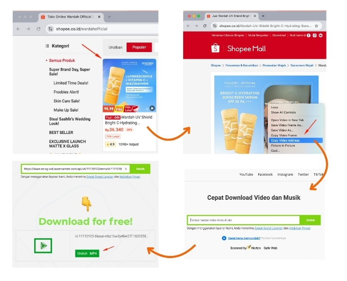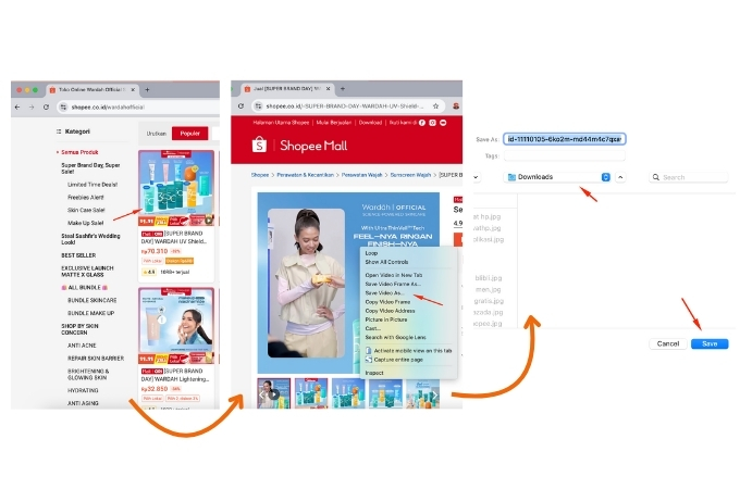 Berikut cara download video Shopee tanpa aplikasi lewat browser laptop: