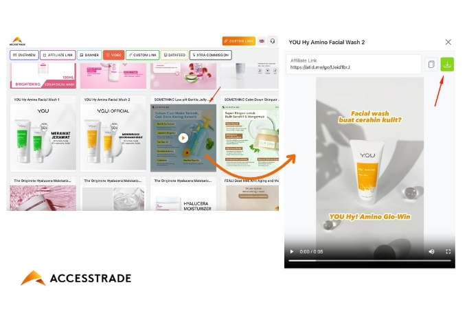 Dengan fitur bank konten affiliate gratis ini, kamu gak perlu repot bikin video promosi dari nol. Cukup manfaatkan konten yang sudah disediakan oleh ACCESSTRADE, lalu fokus membuat strategi promosi yang lebih efektif dan menguntungkan.