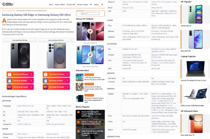 • Menonjolkan perbedaan fitur, harga, serta plus-minus tiap opsi. Pembaca dapat melihat perbandingan spesifikasi, kelebihan, dan kekurangan dari masing-masing produk secara jelas.