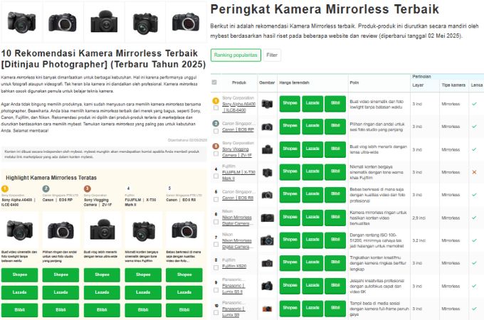 • Biasanya disajikan dalam format terstruktur, seperti tabel perbandingan atau listicle dengan poin-poin, sehingga mempermudah pembaca menangkap perbedaan antar produk dalam sekali pandang.