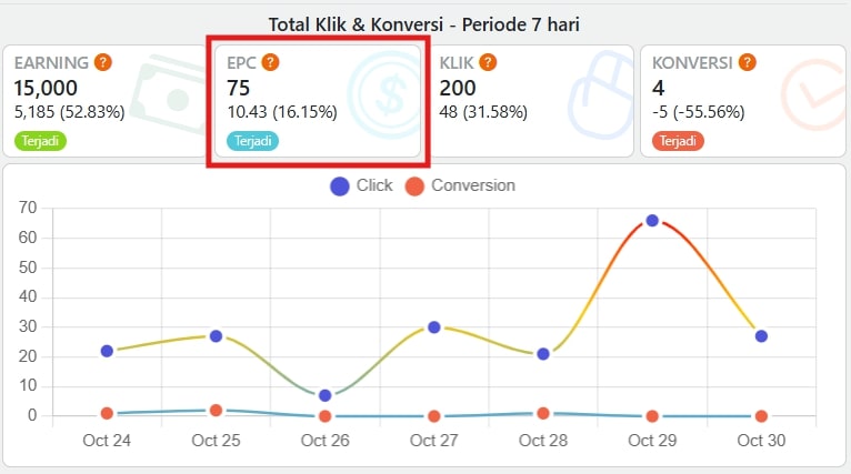 Dengan memantau angka EPC ini, kamu bisa menilai apakah performa konten kamu meningkat, stabil, atau menurun, dan membuat strategi yang lebih tepat untuk meningkatkan potensi konversi dan komisi.