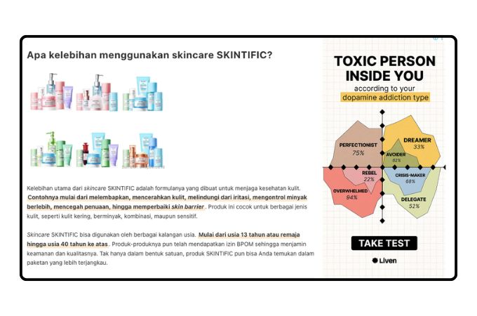 Atau seperti gambar dibawah ini dimana kamu membuka suatu website dan terdapat banner iklan di atas, samping, bahkan di bawah? Itu adalah Display Ads, dimana Google akan menampilkan iklan di platform GDN (Google Display Network) baik itu website, gmail, maupun Youtube, selama masih jaringan Google maka kamu bisa menemukan iklan ini.