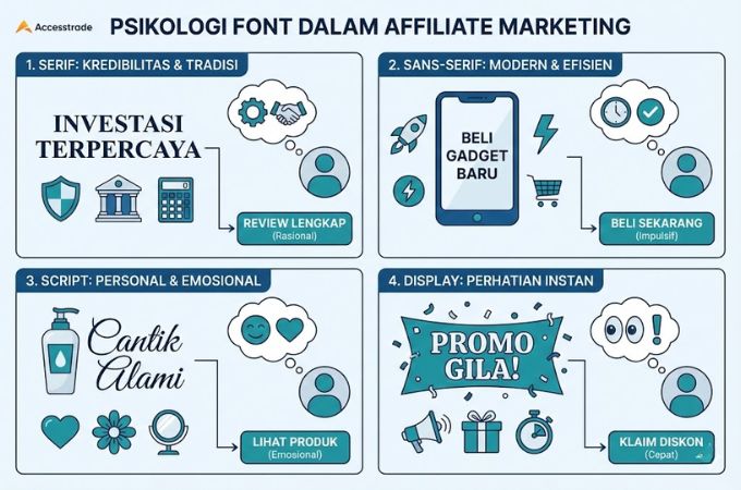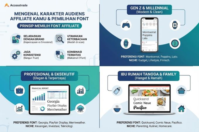 Dalam konteks affiliate marketing, berikut prinsip memilih font yang lebih strategis dan aplikatif: