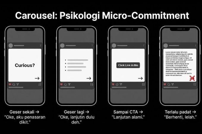 - Carousel → kuat di alur micro-commitment yang perlahan mengantar ke CTA.